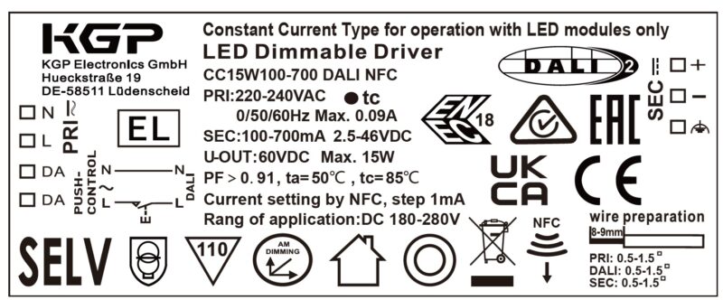 KGP LED DRIVER (TRIAC/DALI) ten behoeve van onze inbouwspots VENICE. Verkrijgbaar in 7W TRIAC (t.b.v. DL 2108 t/m DL 2808), 10W TRIAC (t.b.v. DL 1210, DL R6960 en IBS R6215) en 15W DALI (geschikt voor alle LED inbouwspots).